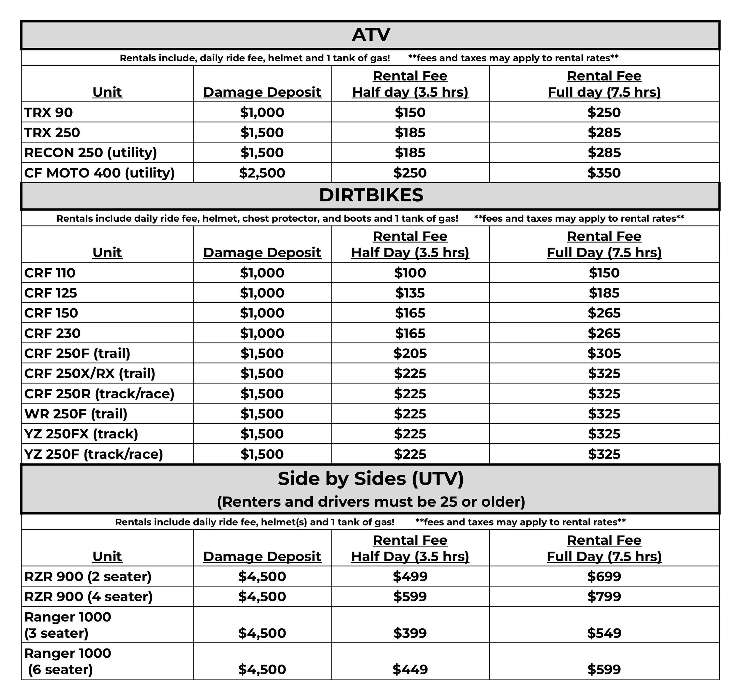 ** RENTAL RATES ARE SUBJECT TO CHANGE**